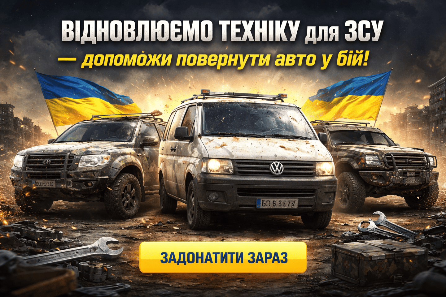 Ти можеш допомогти відновити військові авто, які рятують життя на фронті: пікапи, буси, вантажівки та медичний транспорт.